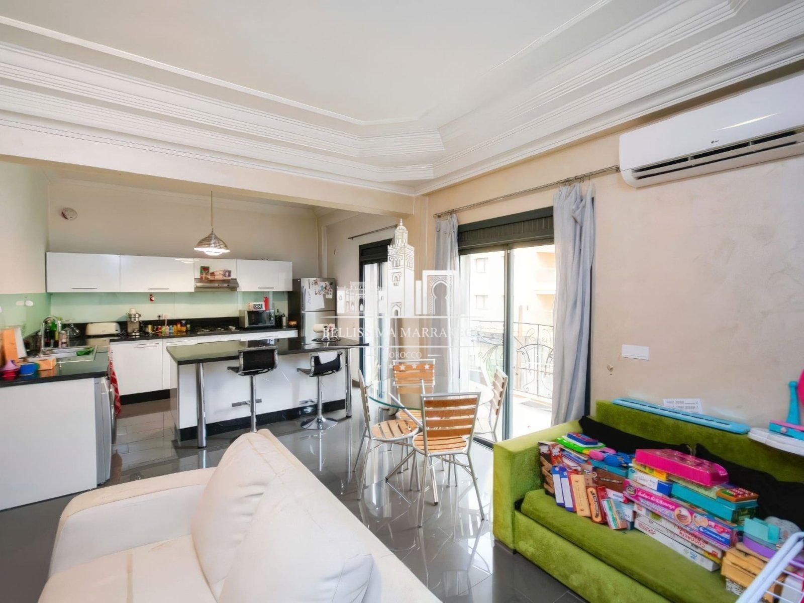 – Salon lumineux avec cuisine ouverte