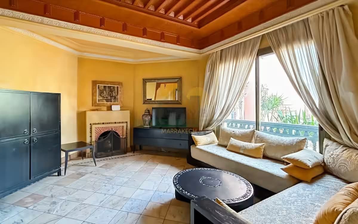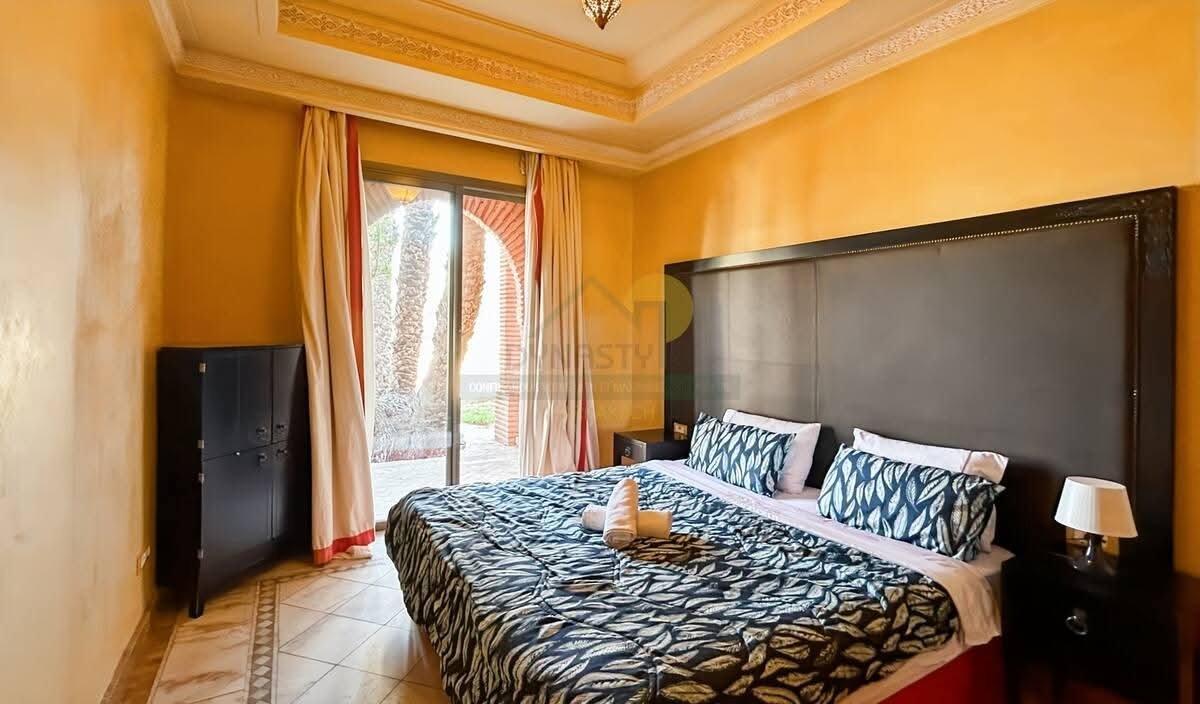 Idéalement situé dans la prestigieuse résidence Les Jardins de la Palmeraie 3, ce bel appartement de 2 chambres en rez-de-jardin vous offre un cadre de vie exceptionnel : calme, verdoyant et sécurisé, avec un accès privilégié juste à coté de la piscine. Parfait pour ceux qui recherchent sérénité et standing à Marrakech.