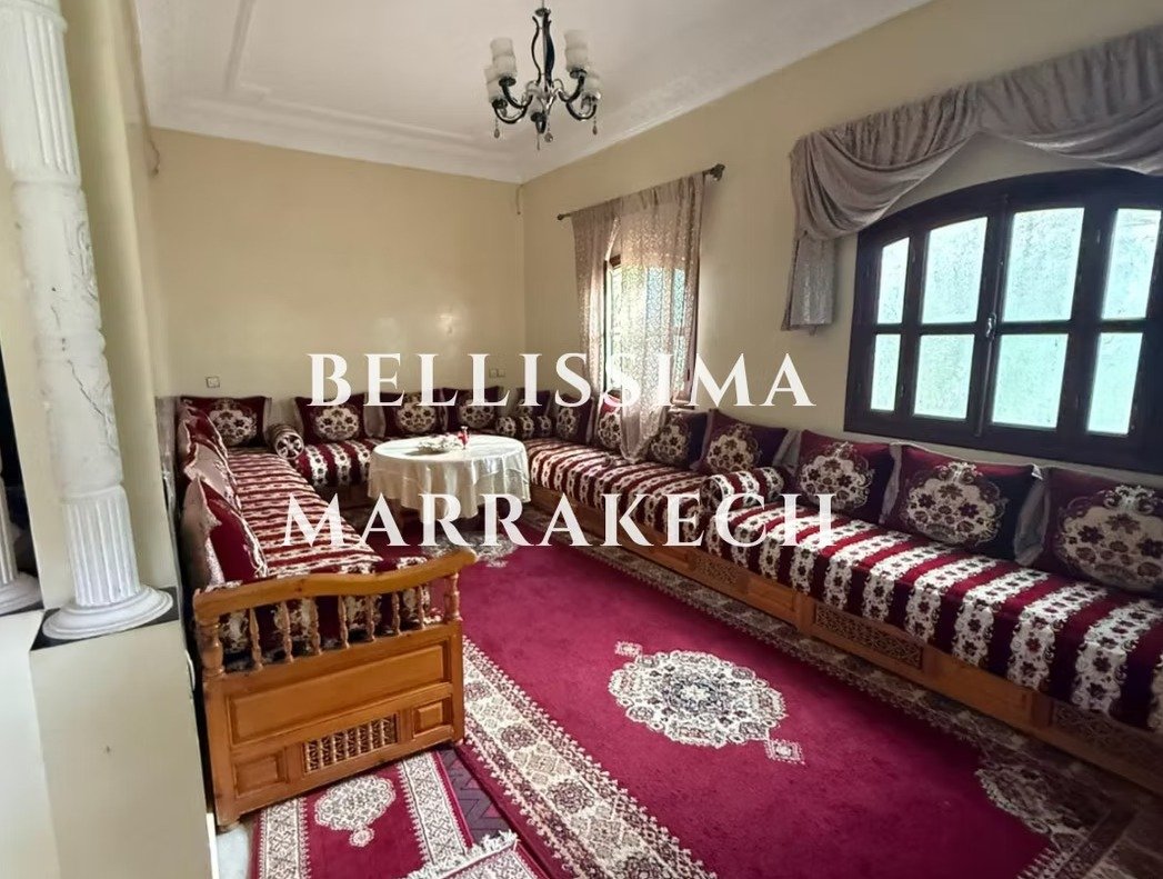 Située sur la Route d’Ourika à Marrakech, cette villa offre un cadre paisible et verdoyant. Elle dispose d’une superficie de 120m², comprenant 3 chambres, deux salons lumineux, une cuisine et un joli jardin avec piscine. L’architecture allie charme marocain et confort contemporain. La villa demande un relooking intérieur.